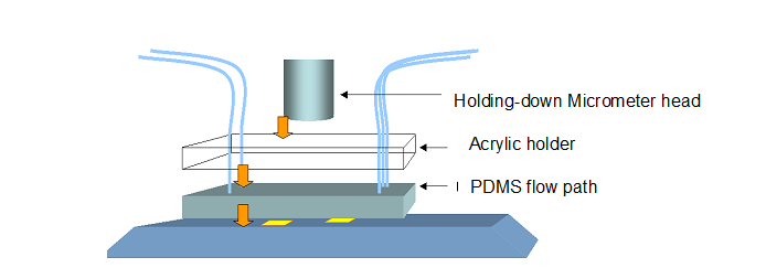 Fig.1 The flow path was fixed to a waveguide with Au spots.