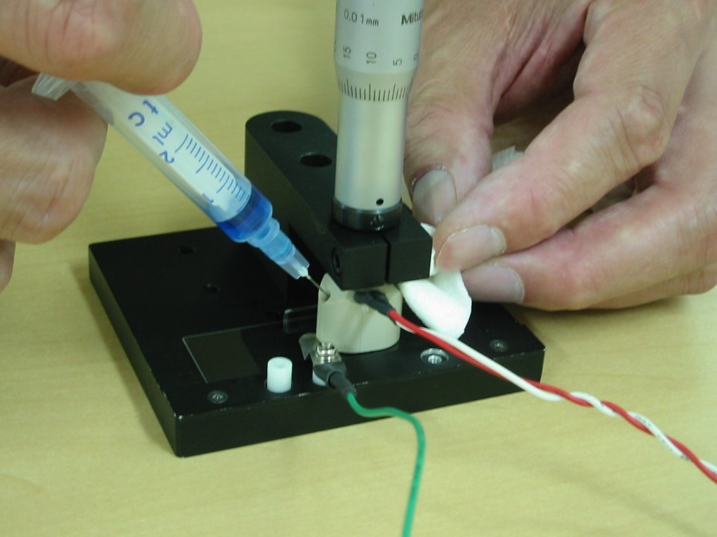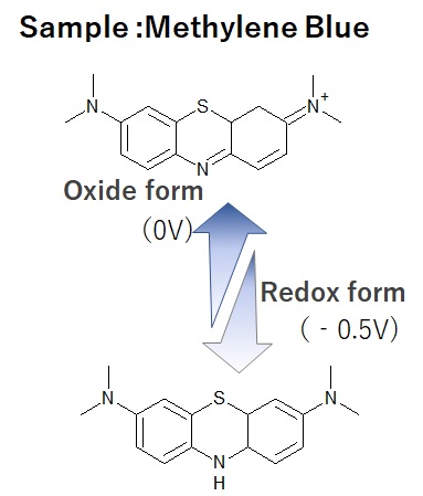 Methylene Blue solution and electrolyte put into electrochemical cell with syringe